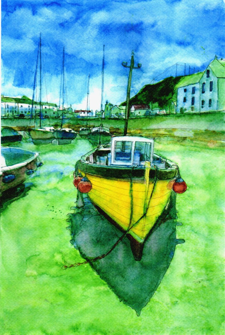 Another boat watercolour – this one of an attractive small boat with amidships cabin – The Sharon Tracy in the harbour at Porthleven in Cornwall.