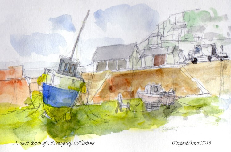 Something a bit different today – here is a quick watercolour sketch of Mevagissey Harbour in Cornwall. If the quality isn’t so great it is because the original sketch is only about 4″ x 2 1/2″ – more of a thumbnail really. Still I hope you like it!