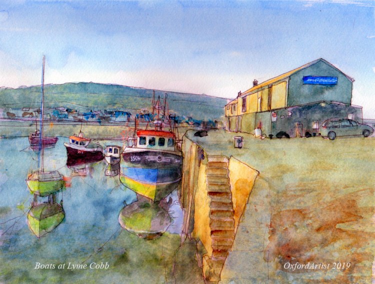 Here is my take on some of the boats moared up in Lyme Cobb – this particular piece inspired by the light as the Sun was just about to set over the nearby cliffs