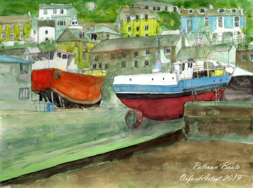 Another of my paintings -‘Polruan Boats’ is elsewhere on this site – and also a smaller view below.