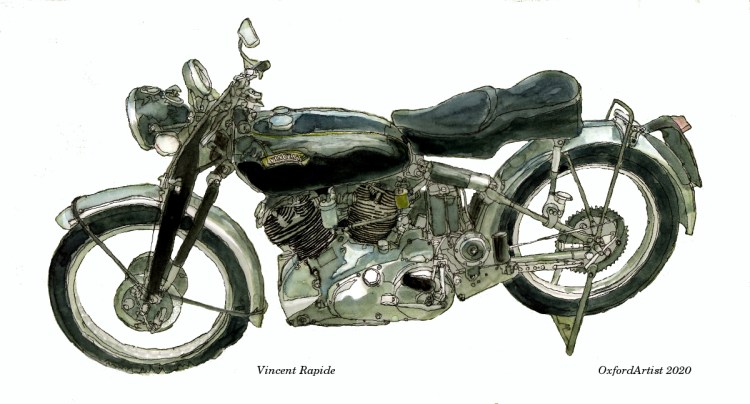 Something a bit different from me today – here is my line and wash illustration of a classic bike – the remarkable Vincent Rapide.