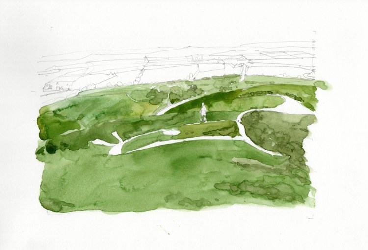 This is a view that I know fairly well – it is from just above the White Horse chalk figure but I realise that this will probably appear a bit abstract. The process of painting wet-in-wet also tends to add to the abstractedness of it – but maybe that is no bad thing.