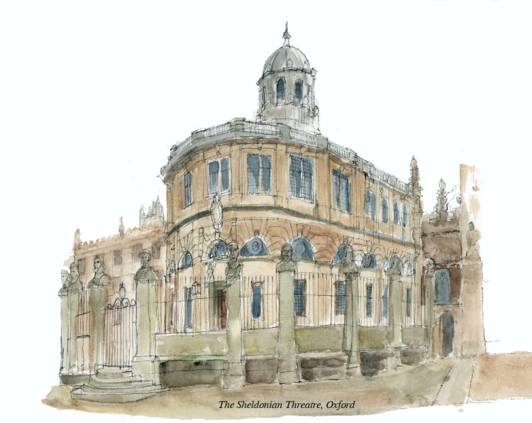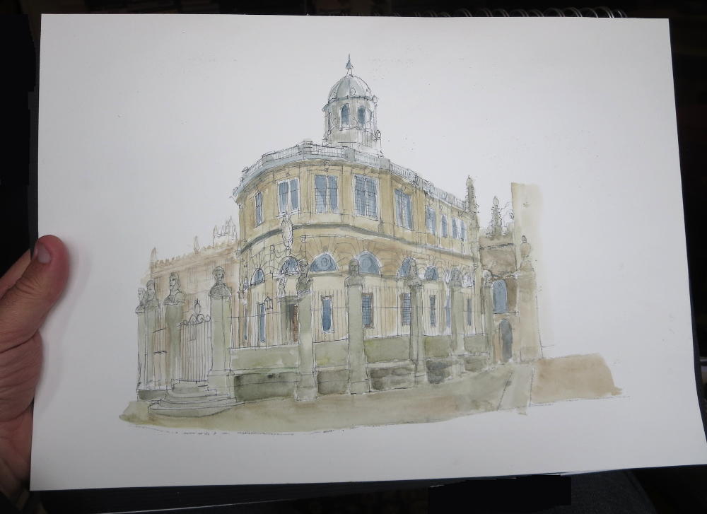 A couple of days ago I posted a new drawing of the Sheldonian Theatre in Oxford – and said I’d post when the watercolour was finished – so here it is!