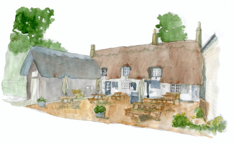 A rainy day today so some experimentation – here is my relatively simple sketch of the Six Bells pub in the village of Warborough, in southern Oxfordshire.