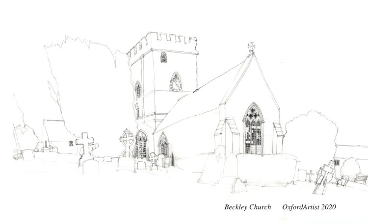 I’ve been making the odd visit to the village of Beckley, a few miles north of Oxford, to draw their church.