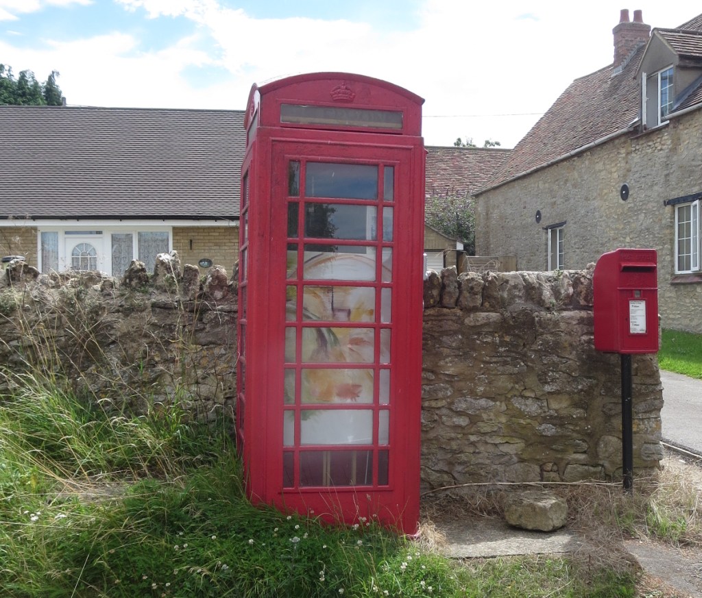 A quick walk around the village also revealed a couple of other features – one a thatched duck on the ridgeline of one of the cottages and the other that the old local phone-box has been used to house a make-shift art display.