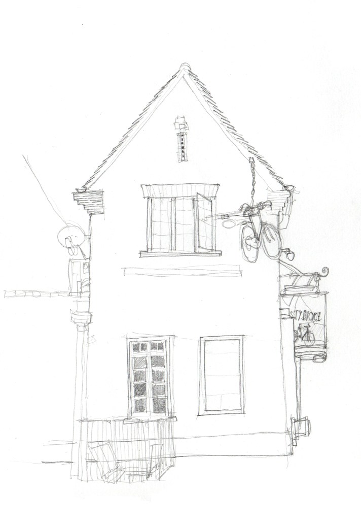 Above is my sketch in situ and below is my drawing of ‘The Rusty Bicycle’. If you are wondering, yes that is indeed an old bicycle hanging up and advertising the pub.