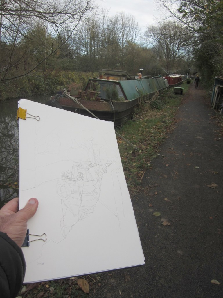 That makes sketching a little easier if you can take the cold. These days I am not too concerned about people taking an interest – just as long as they maintain some sort of distance and are not too ‘in your face’ -especially in these covid times. Most people along the canal are polite smile and just say ‘hello’.