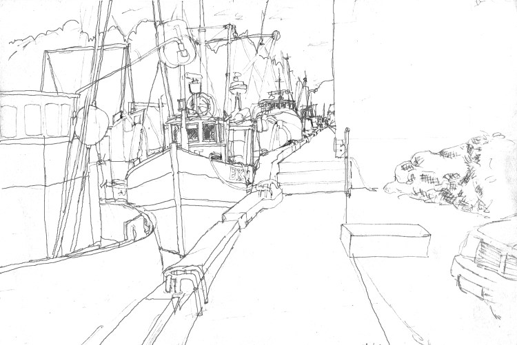 So on with the New Year – and maybe I’ll be able to get out a bit more and draw more harbours and boats…