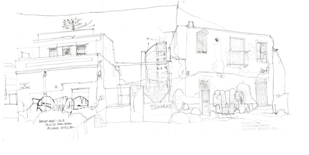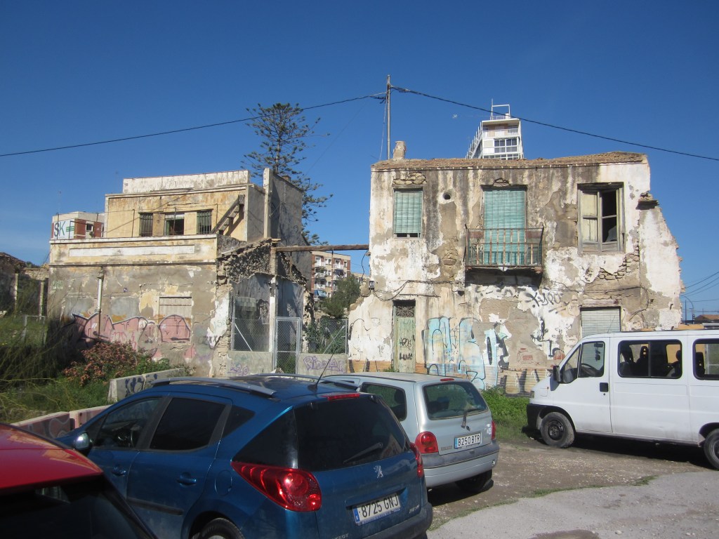 Not every day is sunny and warm in Spain and they do occasionally have the odd rainy day or week – just not as often as England. We had a couple of rainy days on our holiday but not so much as to dampen our spirits. On a rainy afternoon I took a walk and revisited a semi derelict row of houses not too far from the Marina Station in search of inspiration.