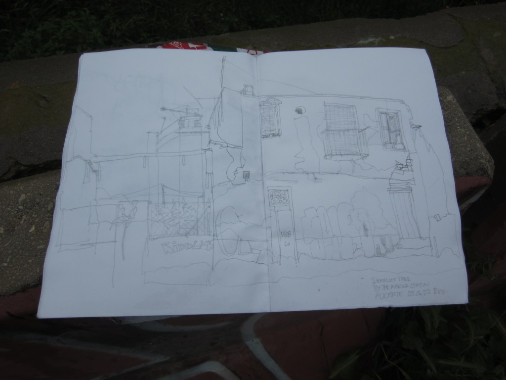 A couple of days later I returned to do the second part of this sketch. Here is a split view of the two houses.