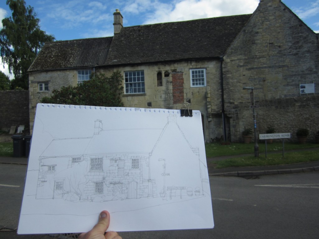 A few days ago I revisited the town on my travels and on a nice sunny May day settled down to draw an interesting building. This is Dover House and it has some intriguing architectural details including several small reused stone arches. This is a building with history and has been patched and repaired over the years. Uniquely, part of the house was apparently dismantled and transported wholesale to America by Henry Ford and now resides in Dearborn, Michigan.