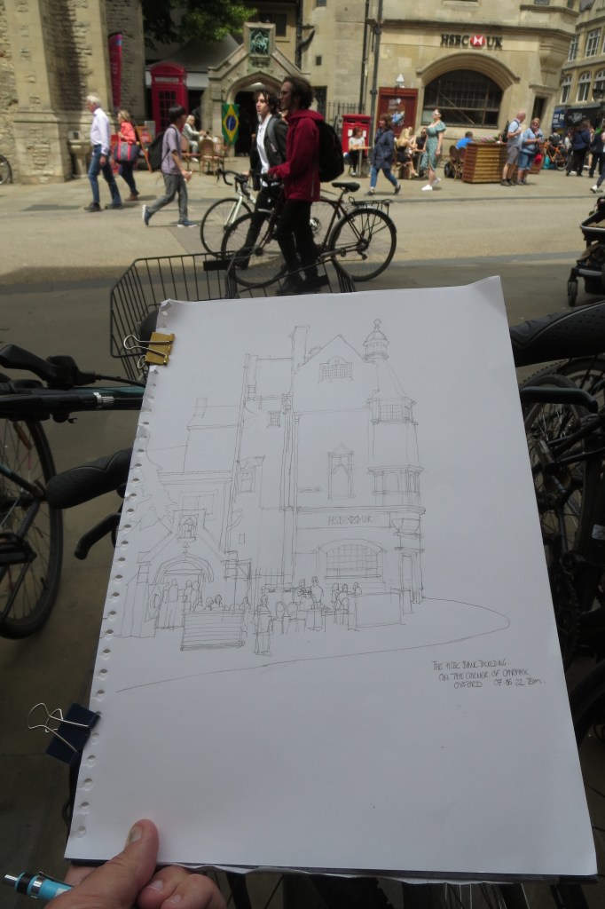 In the centre of Oxford the old crossroads at Carfax is somewhere that I’ve made several drawings. This is partly due to the collection of interesting buildings clustered around this historic junction. Another reason is that I’ve managed to find a spot, behind the cycle racks, that is just out of the busy swirl of people passing by.