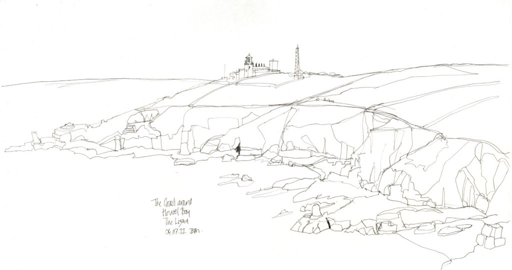 I’ve been away on holiday for the past week in Cornwall, trying not to eat too many fish and chips or pasties. I’ve been lucky enough to go to some great locations and have the time to do some sketching. Staying at the Housel Bay Hotel on the Lizard peninsula for a couple of nights was also something of a luxury, with great views and easy access to the coastal path.