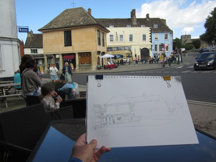 I set up outside one of the town’s old coaching inns and drew the scene below.