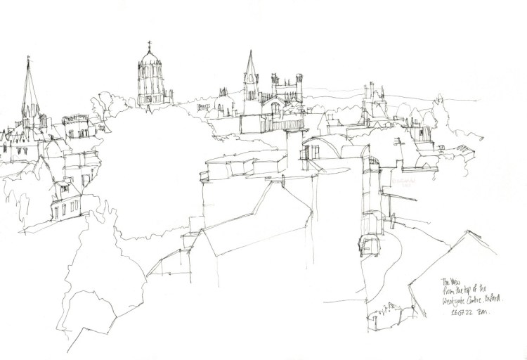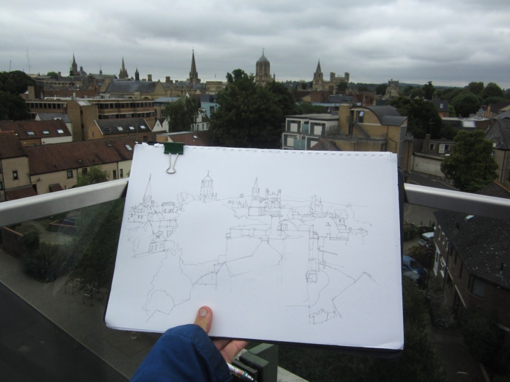 Here is my drawing in situ with the towers, spires and domes of the Oxford skyline in the distance.