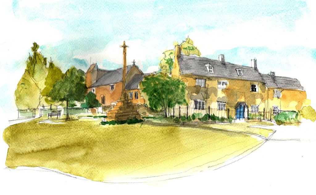 Here is a photograph of the church and house. My visit was on a Sunday afternoon and in this part of west Oxfordshire there was hardly anyone around – I think most people were still in one of the local pubs after Sunday lunch…