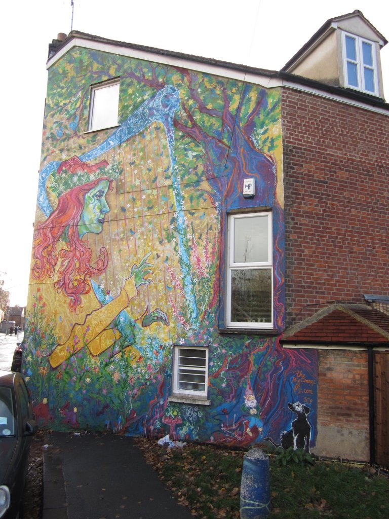 Here is another more modern example of a mural which is just a couple of minutes walk away, on Union Street. This is the work of local artist and muralist Mani Manson-Reeves together with Fusion Arts. Here are a couple of links – to Mani’s web site and Independent Oxford that also feature this (and other) east Oxford Murals.