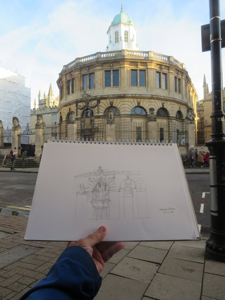 Below are some of my views and sketches of the Sheldonian this year…