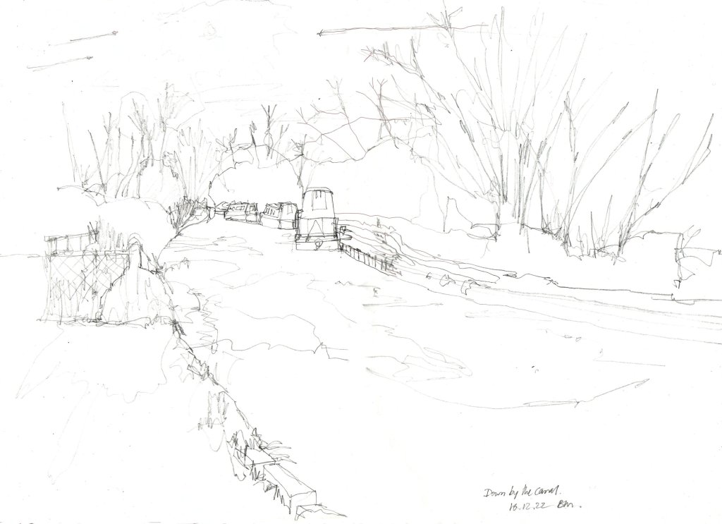 It has been cold in England for the past couple of weeks and today the temperature is supposed to be getting up to a toasty -1 c. Nonetheless, being nice and sunny has been enough to tempt me to go out and do some sketching, which in my case means visiting a local frozen canal.