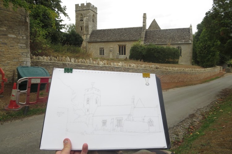 A while ago – back in September- I spent a afternoon sketching in the village of Asthall, west Oxfordshire. It was nice to get out from the hurly-burly of a busy weekend Oxford and enjoy the relative quite of the countryside. I settled on drawing the church which stands next to Asthall Manor. At the time I put up a post which you can open via this link ‘Two drawings of Asthall Church’.