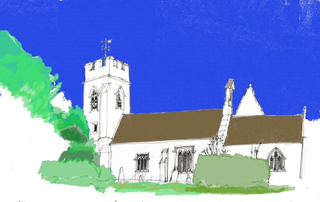 I have tried a watercolour of this church but also on these cold, wet and cloudy winter’s days it is a good time to experiment with various graphic programs, sometimes to inform later paintings?