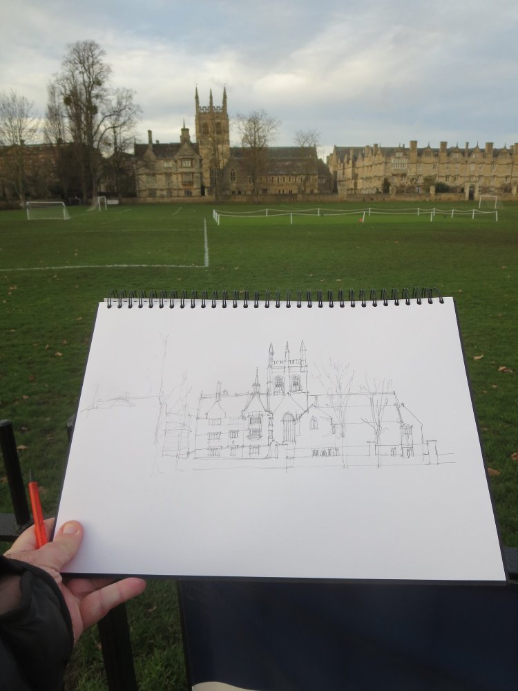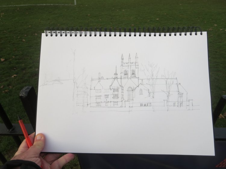 A short walk further and I decided to try sketching some of the buildings around the meadows.