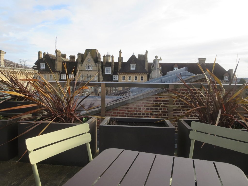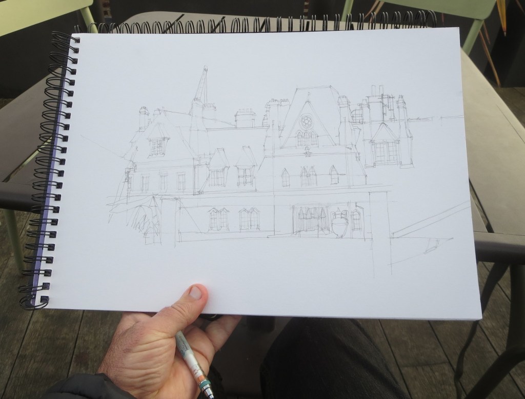 This week while visiting the Ashmolean Museum in Oxford I also tried the lunch at their rooftop restaurant – and very good it was too! However, being an urban sketcher, I was quite taken with the view of the rooftops from the Ashmolean to the Randolph Hotel opposite – and decided to return equipped with my sketchbook to attempt a drawing of this view.