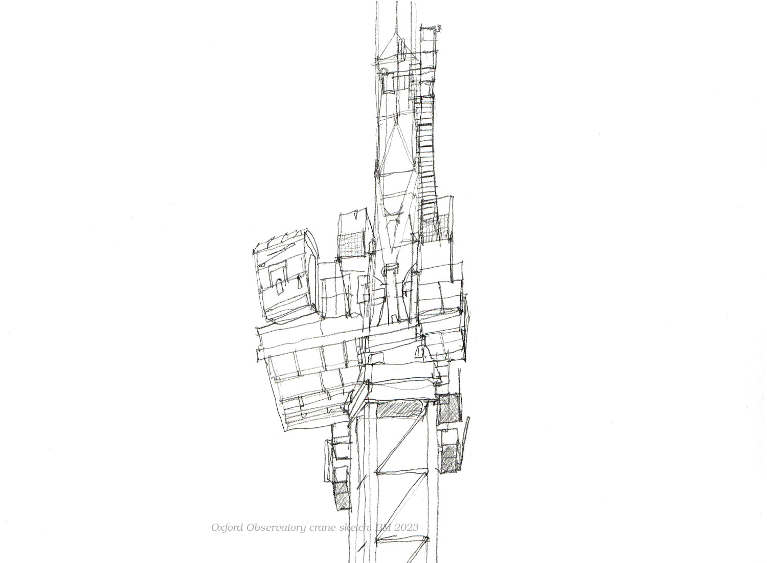 On a quiet Easter Sunday afternoon I made my way into Oxford and settled on doing a drawing from outside the Radcliffe Observatory. The most striking thing from this viewpoint is the new site between the Observatory and the Blavatnik Building (links below). Here they are constructing a big new Humanities building which will hopefully … Continue reading Oxford cranes – at the Observatory