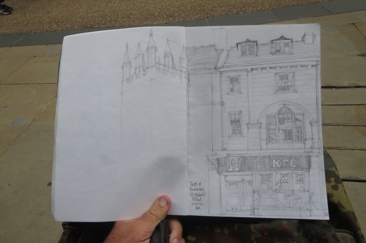 You might note that in my sketchbook this is squeezed in besides the start of another sketch – this I think is the start of the tower at Magdalen College, but they seem coexist fairly happily together. It is also good to fill some of those empty sketchbook spaces.