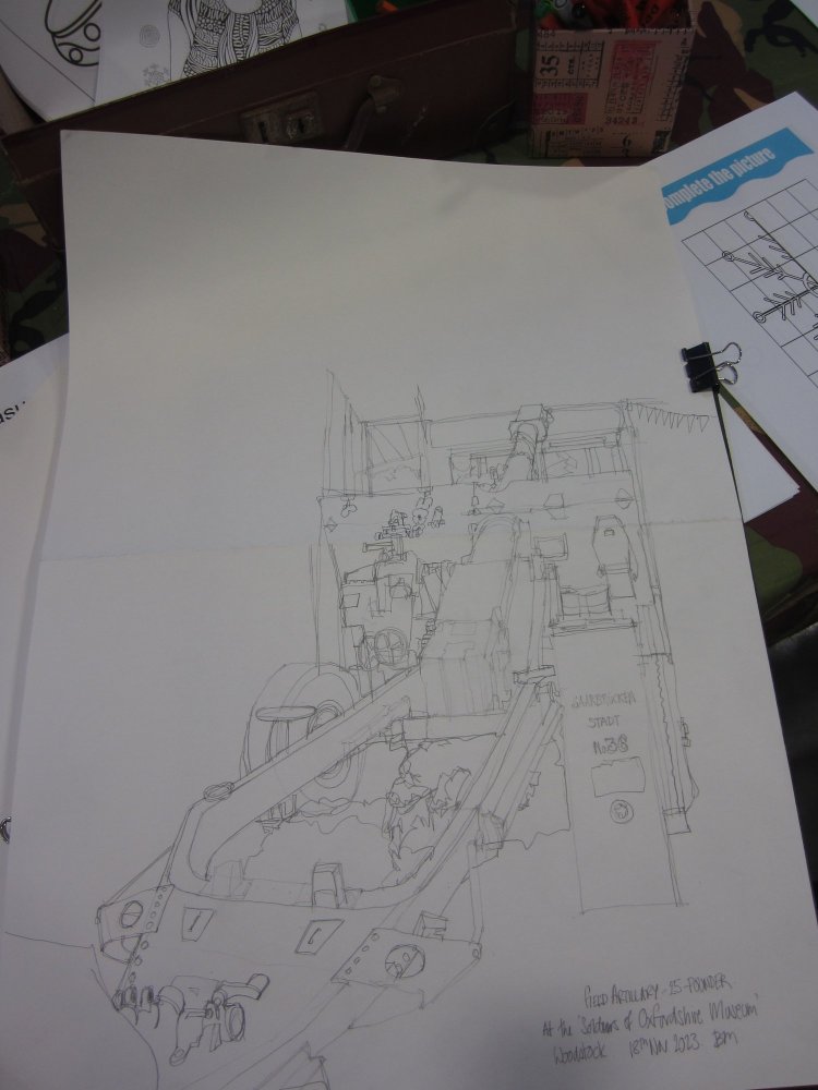 Anyway, there is a big 25 pounder artillery piece right by the entrance and over a couple of days I decided to visit and sketch this.