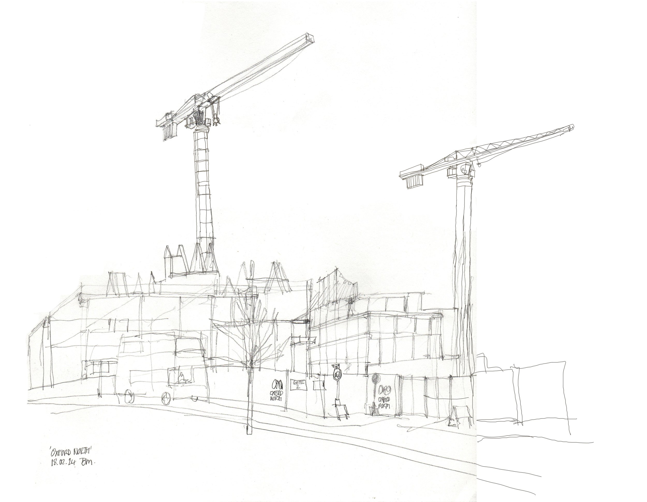 On the northern outskirts of Oxford they are building what is called the Oxford North ‘Innovation district’ . This will be a mixture of offices and laboratories with additional houses with some small park areas. Possibly its main feature is ‘The Big Red barn’ – which is likely to be more offices in something that … Continue reading Sketching Oxford North
