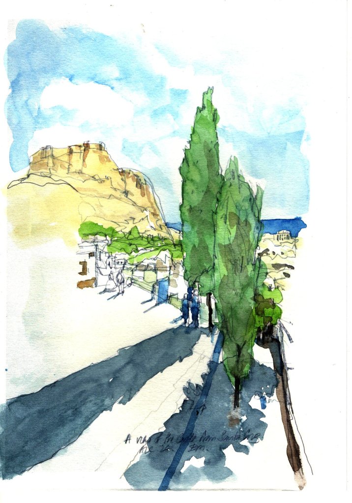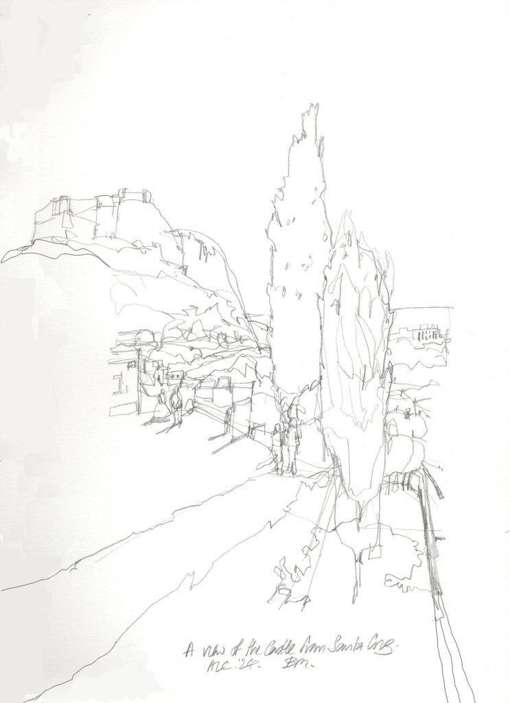 Its been a while ago since my last holiday in Alicante, Spain. While there i managed to do a couple of my favourite things; sketching from around the castle hillside and drawing the Old Town. Here is one of my sketches – a view from the Santa Cruz church and the old town, towards the castle in the distance.
