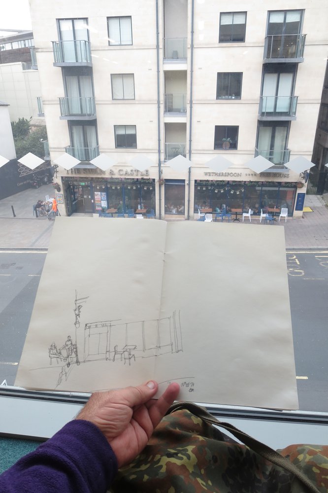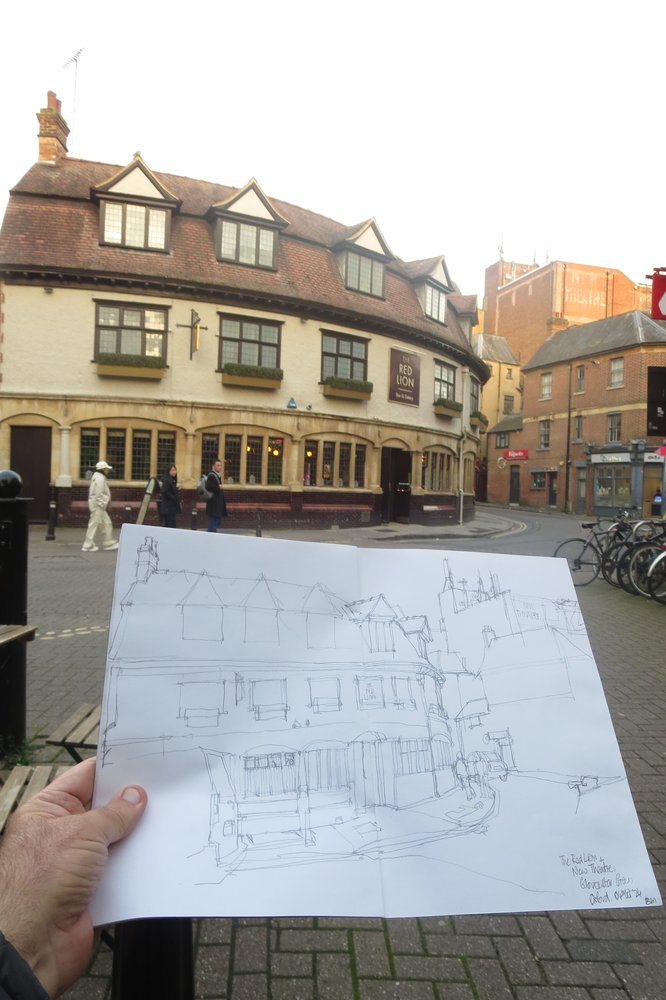 Back to Oxford Central Library – sketching the Wetherspoons again.