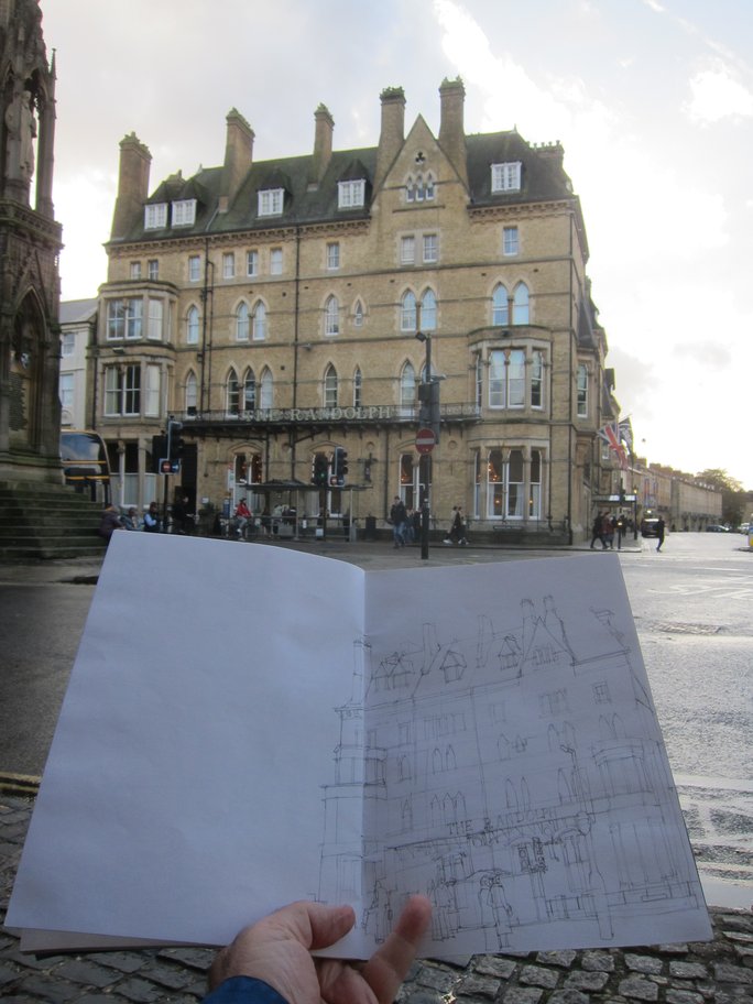 The Randolph Hotel in Oxford is one of the city’s older hotels. I’ve drawn The Randolph before and this can be a bit daunting as it is a large building and has lots of architectural details. However, on a damp Sunday afternoon I thought I’d try sketching it again. So setting up to draw, here … Continue reading Sketching The Randolph Hotel, Oxford