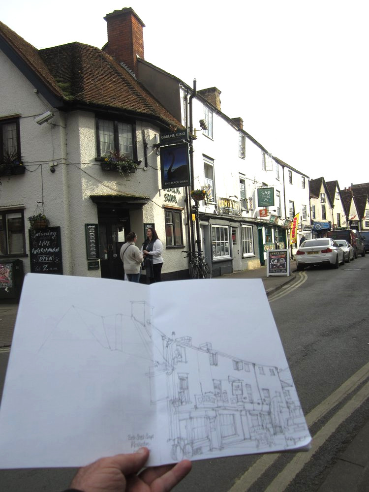 One of the reasons I like Abingdon is that it has some history and that is partly reflected in its buildings. It has a lot a nice old houses in a variety of styles and a fine County Hall. I have done a few drawings along St. Helen’s Street, which runs south from the County Hall. This is full of listed buildings and so is well worth visiting during the annual ‘Open doors’ weekend, if you have the time.