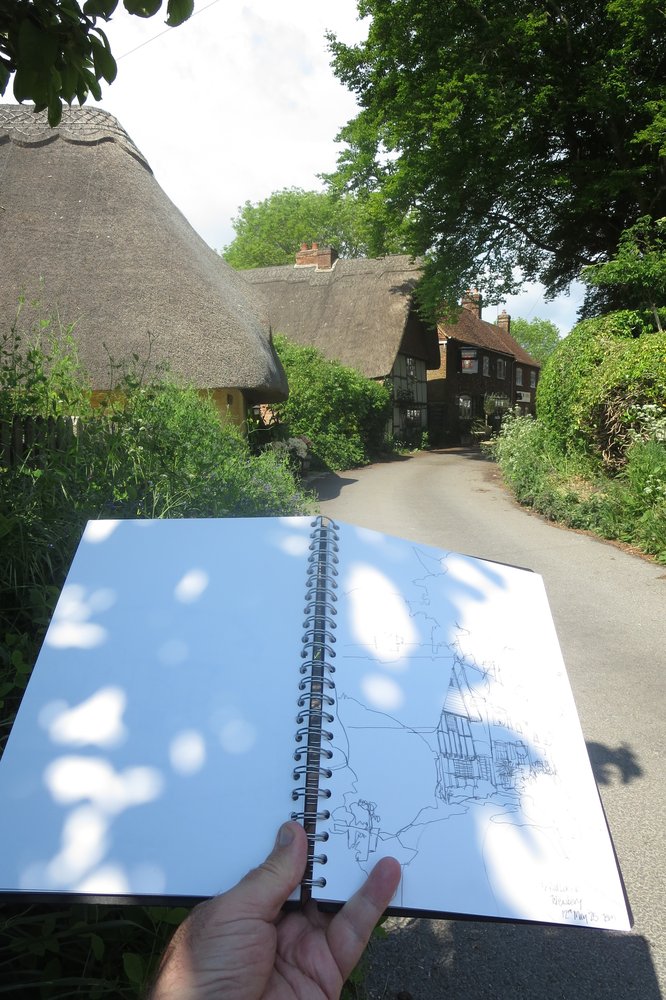Blewbury is one of a series of villages along the scarp of the South Oxfordshire Downs. it is about 10 – 15miles south of Oxford and a good spot for a drive out and some country sketching. So, on a lovely May day I got to sit for a while and do a few sketches.