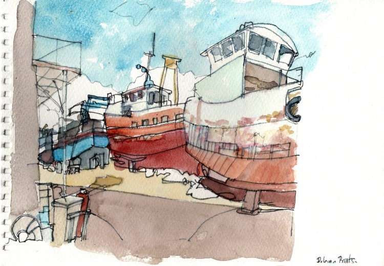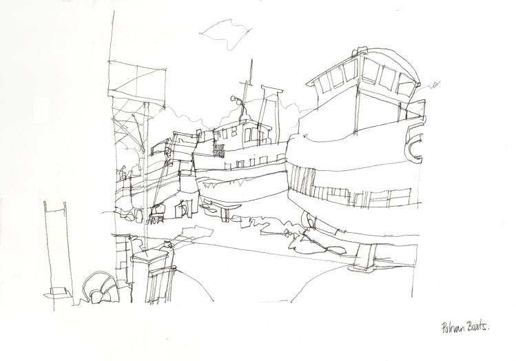 So although Polruan was challenging it was also rewarding. There are a couple of local pubs, the views are good and the boatyard seems to be busy again. I didn’t have the time to sketch but managed to take a wander and also took some good photos, which I used later to sketch from.
