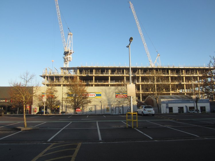 On my travels around Oxford I’ll sometimes go around to the Botley Road. This is on the western side of the city and partly cut off from the rest of the city by a massively over-running infrastructure project at the railway station. I’ll not go into that but I’m sure the people of Botley and particularly the local business’s might have something to say on the subject. But- hey! – this is Oxford and despite everything there is still an extensive building programme going on. On the Botley Road this includes a big new concrete and steel office block (or whatever it is) along with its attendant construction cranes. I quite like cranes so took the opportunity to sit in the car in the car park of a well known electrical technology store – and do some sketching.