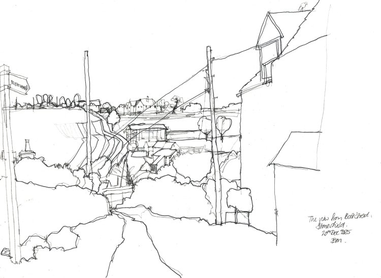 Here is the view and my in-situ sketch along with a slightly cleaned up scan of my sketch.