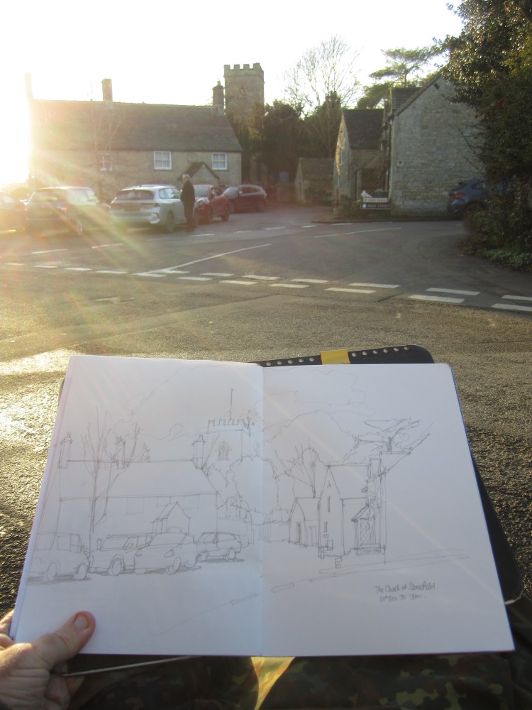 Stonesfield is a small village about 5 miles north-west of Oxford. It’s a quiet place and retains some of its history as a working village from back in the days when boots and gloves were made here. It is a place I’ve sketched before but it seemed like a good option for a touch of ‘non-retail therapy’.