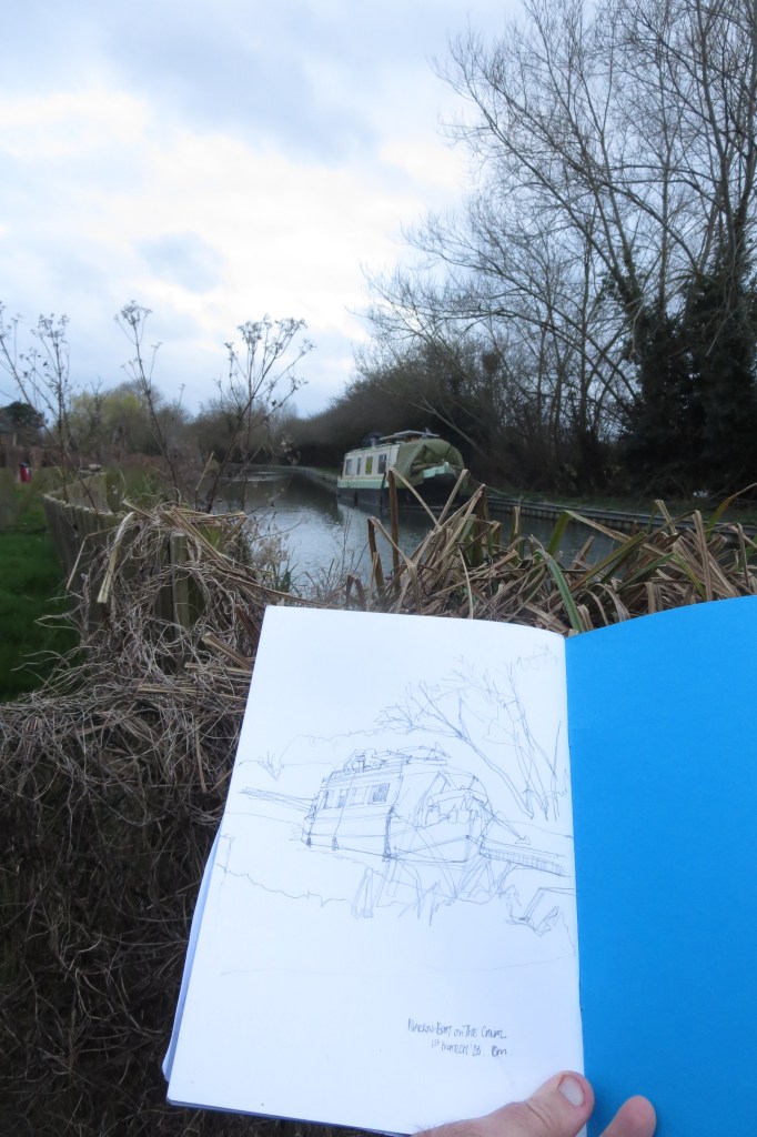 On a dull weekend I made a short trip to the local Oxford canal to do some sketching. Here is my view of one of several narrow boats moored along this particular sketch of the canal on a quiet Sunday afternoon.