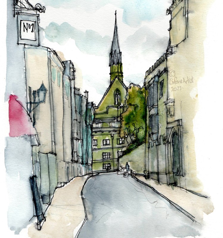 A few days ago I did a post of ‘Sketching amongst the cycle dispatch, Cornmarket’ – drawing one of the old historic pubs in this part of town. After doing that i decided to do another sketch facing in the other direction – towards Exeter College Chapel. Here is my view and sketch in-situ. And […]