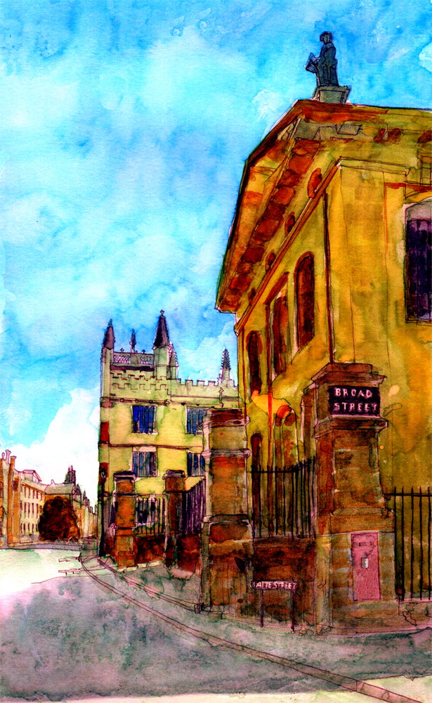Sketching on the corner of Catte Street and Broad Street, Oxford