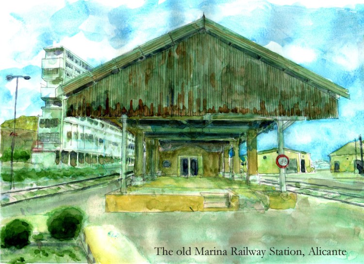 Read MoreThis is a study of one of the buildings of the Old Marina Railway Station in Alicante, Spain. I spent about an hour drawing this early on a workaday morning – enlivened by fireworks and music from a local festival of the Virgen del Socorro.