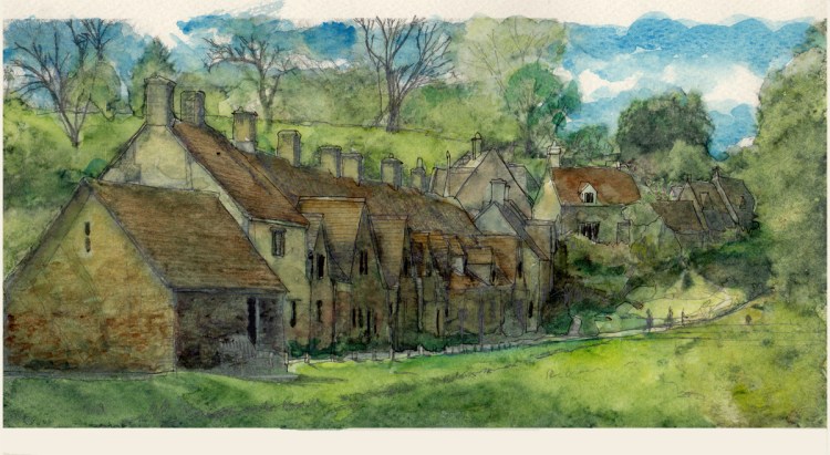 Here is one of my watercolours of a well known tourist view, the former workers cottages on Arlington Row at Bibury, in the Cotswolds. Bibury is a popular stopping spot if you can find parking next to the clear stream that runs through the village. There is a small footbridge across the stream to a […]