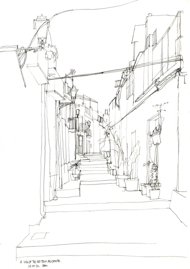 After sketching a view over the city – ‘a view towards the cathedral’ – I walked down a flight of steps to one of the main walkways in this part of the old town. With the evening being quiet and few people about I decided I’d try sketching a view along the Calle San Roque. […]