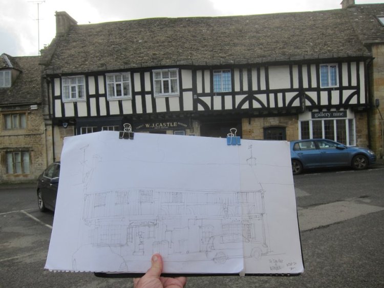 Another of my watercolours – this a coloured version of an earlier pencil sketch. The location is M.J. Castle’s butcher’s shop in Northleach in the east of Gloucestershire.