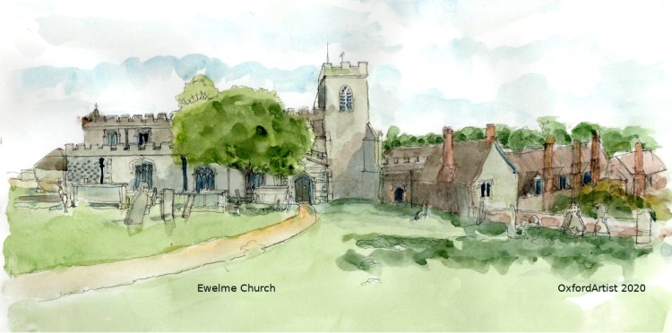 Leading a quiet life for awhile.. but intending to do a more ambitious drawing and painting of the church and almshouses at Ewelme. in the meantime here is a watercolour sketch of the church, with the almshouses to the right And here is a photo of this rather lovely church – for comparison